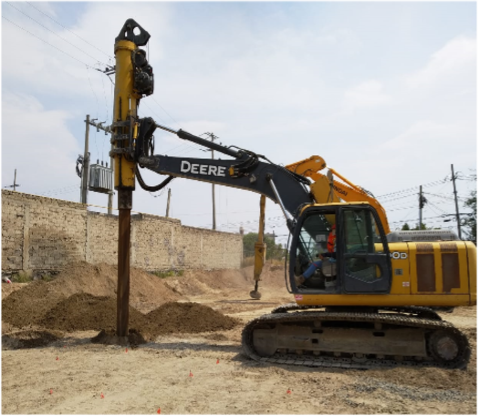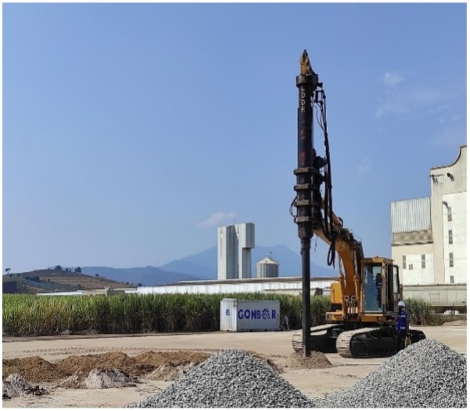 During the construction process, a hole is drilled to insert crushed, angular gravel. A beveled rammer attached to a high-frequency vibratory hammer is then inserted, inducing vertical vibro-compaction energy. Successive layers, approximately 30 to 60 cm thick, are compacted until the surface or foundation depth of the element is reached.